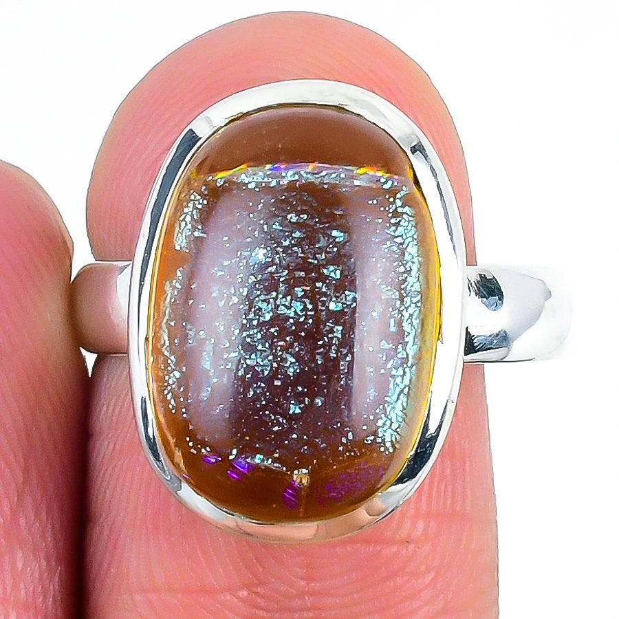Mexican Dico Glass Stone Solid Sterling Silver Stackable Ring Jewelry Size 8.5