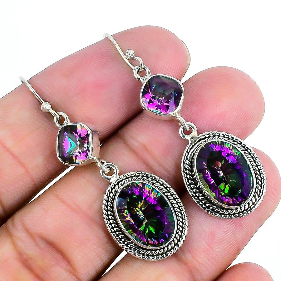 Mystic Topaz Stone Artisan Engagement Trendy Drop Dangle New Earrings 925 Silver