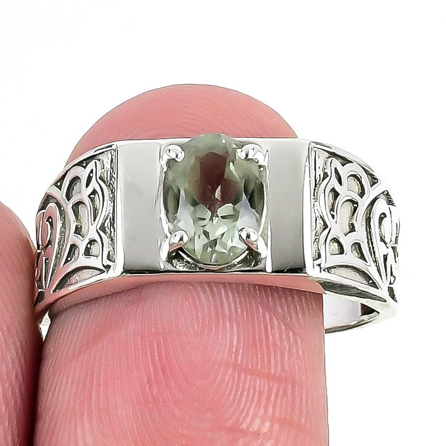 Natural Green Amethyst Solid Silver Promise Statement Stackable Wife Ring US 9.5