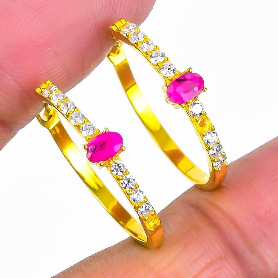 Ruby Gemstone Sterling Silver Dangling Sister July Birth Unique Earrings Jewelry