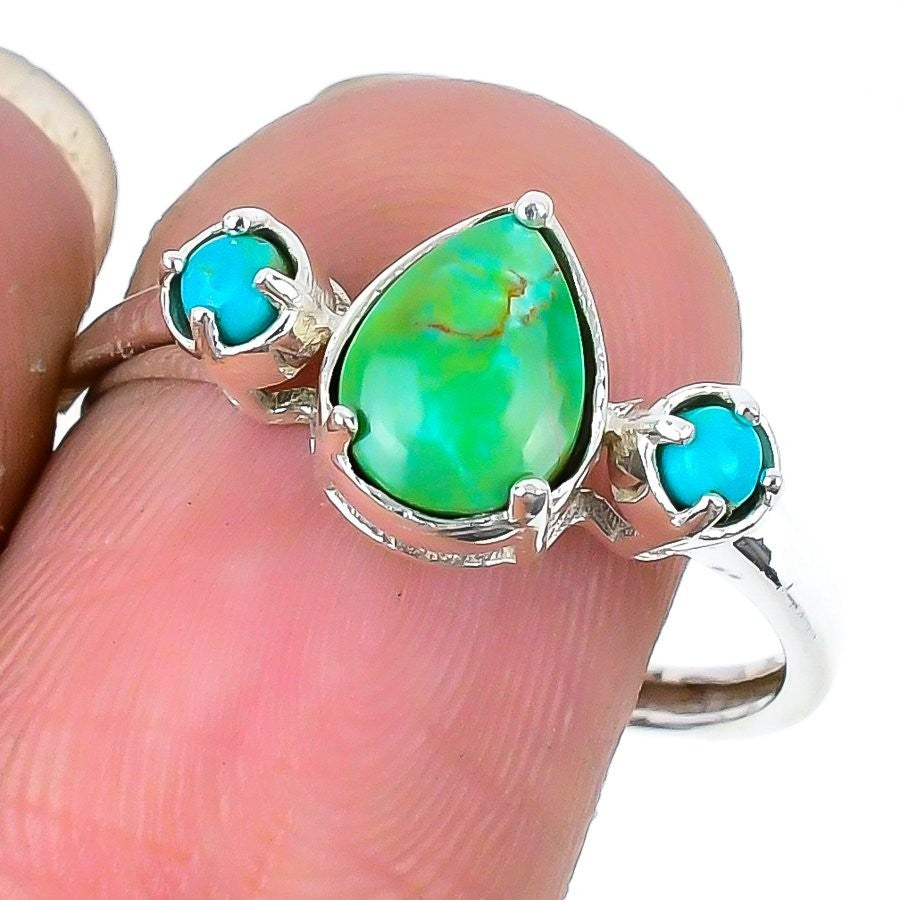 December Birth Natural Turquoise 925 Solid Silver Wedding Statement Ring Size 10
