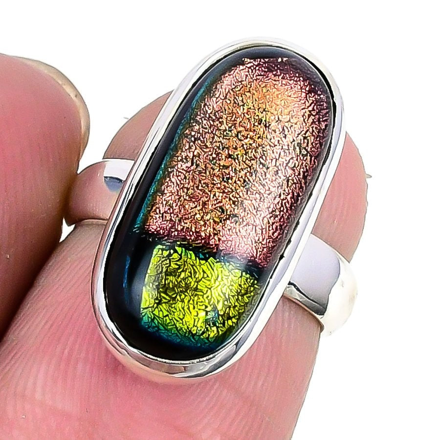 Natural Mexican Dico Glass Solid Sterling Silver Cluster Art Deco Ring Size 4.5