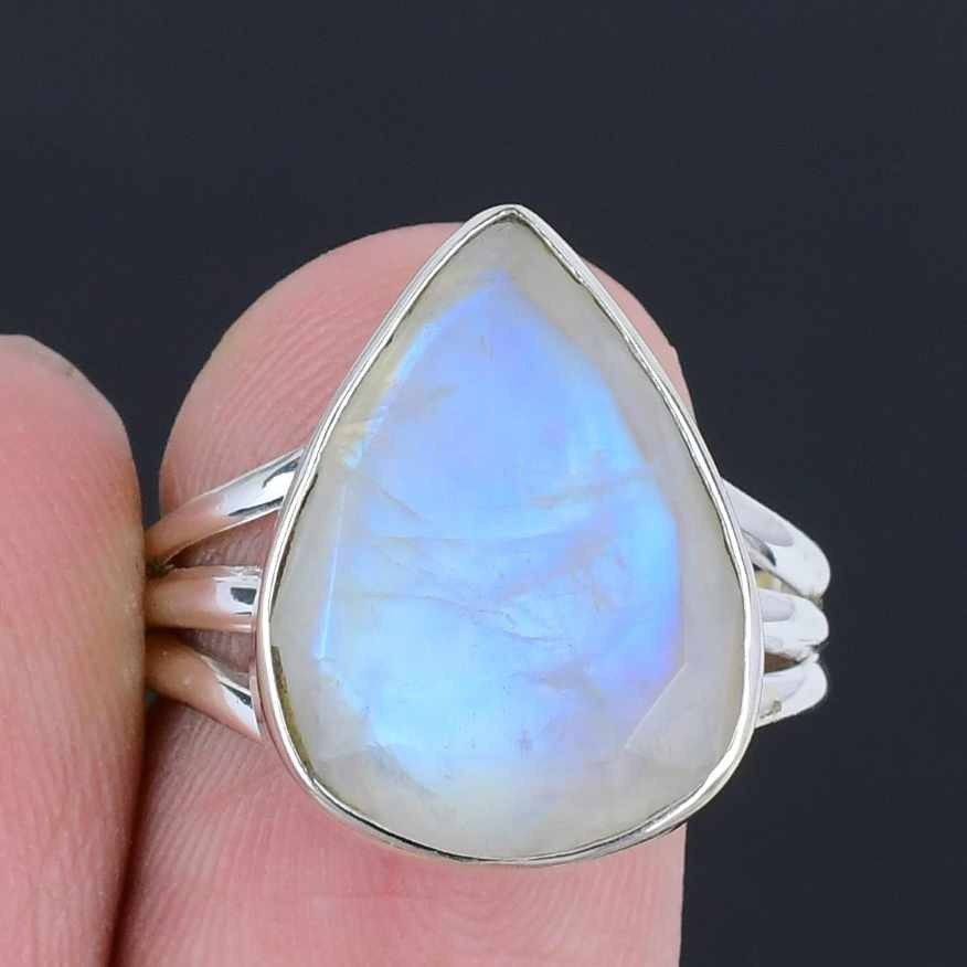 Rainbow Moonstone Faceted Stone 925 Sterling Silver Cluster Wife Birthday Ring