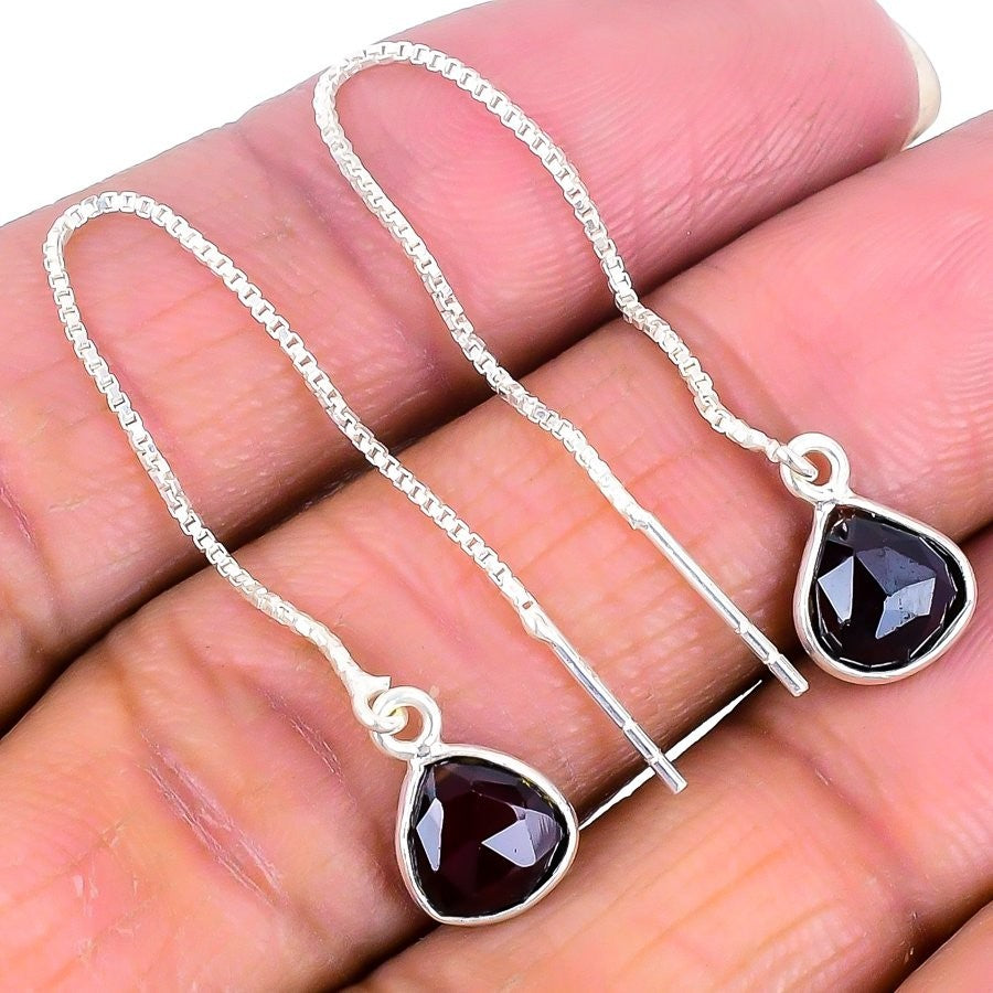 Garnet Faceted Stone Solid Sterling Silver Friendship Day Birthday Drop Earrings
