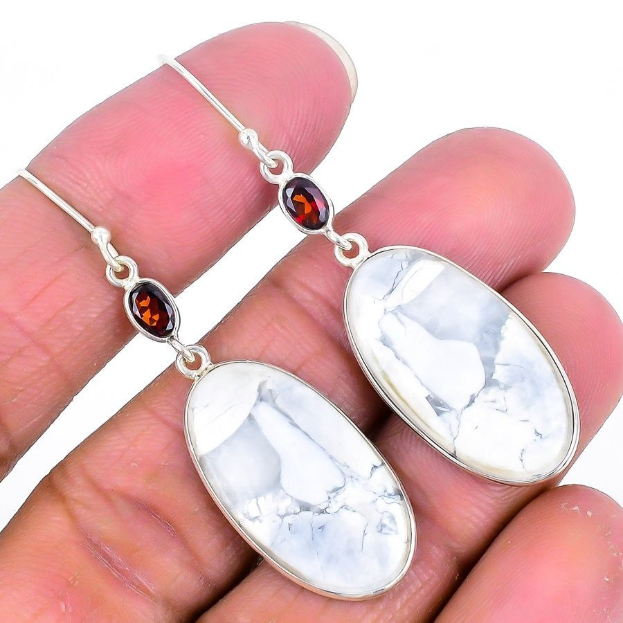 Natural Howlite Jasper Boho Dangling Trendy Earrings Jewelry 925 Sterling Silver