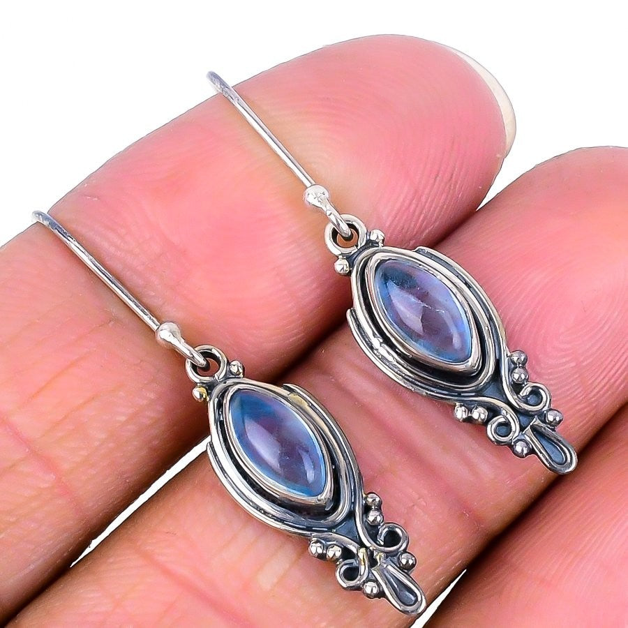 Aquamarine Stone Solid Silver Trendy Handcrafted Drop Best Sisters Gift Earrings