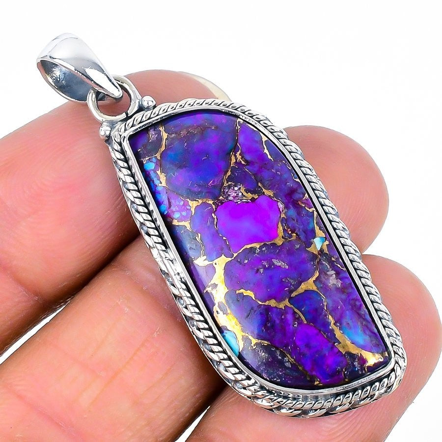 Copper Purple Turquoise Gemstone December Birth Daughter Boho Pendant 925 Silver