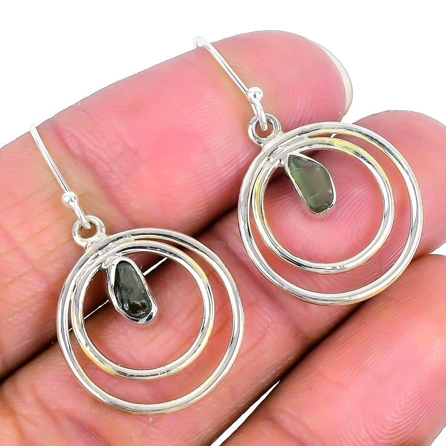 Green Tourmaline Druzy Stone Solid Sterling Silver Daughter Dangling Earrings