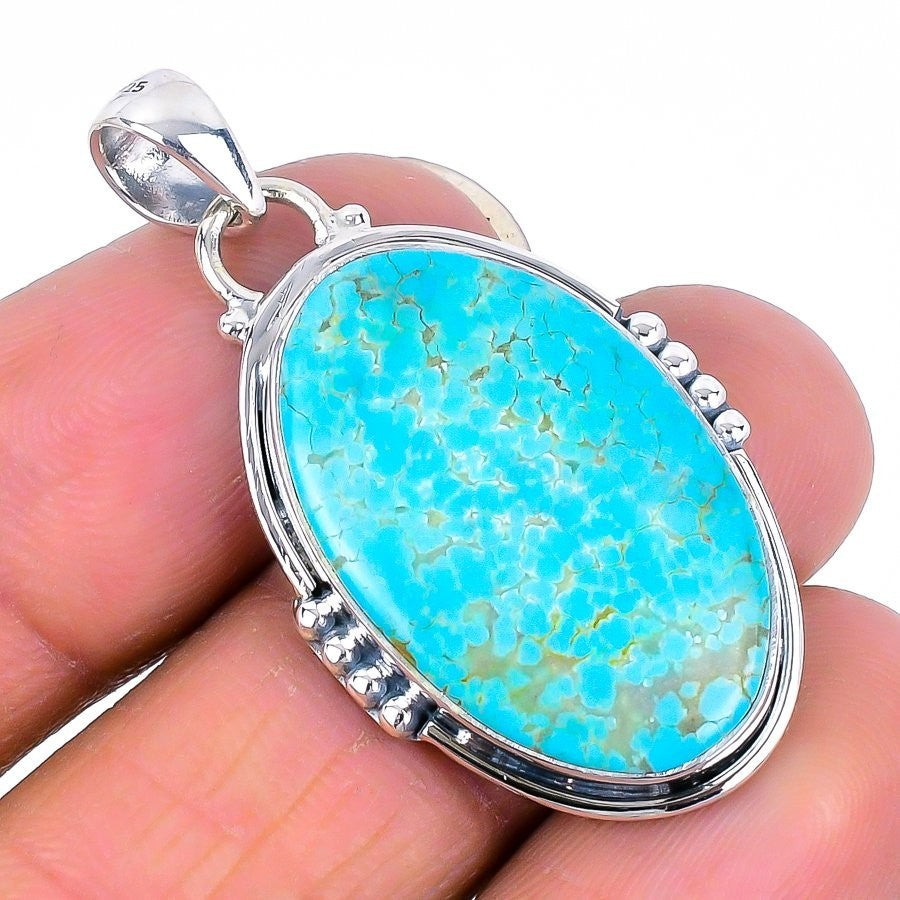 Throat Chakra Tibetan Turquoise Gemstone Solid Sterling Silver Pendant Jewelry