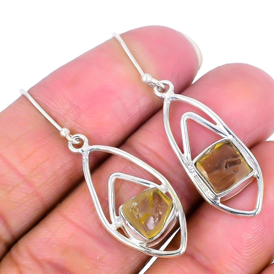 Citrine Druzy Stone Handmade Wife Drop Friend Gift Wedding Earrings 925 Silver