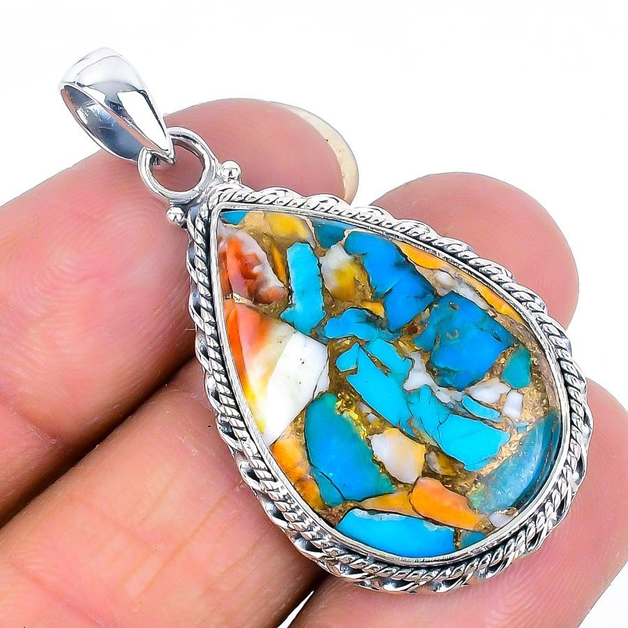Friendship Day Sale Spiny Oyster Stone Sterling Silver Handmade Pendant Jewelry
