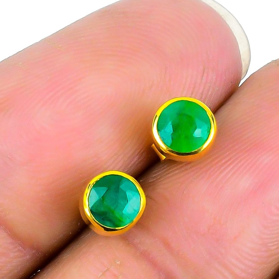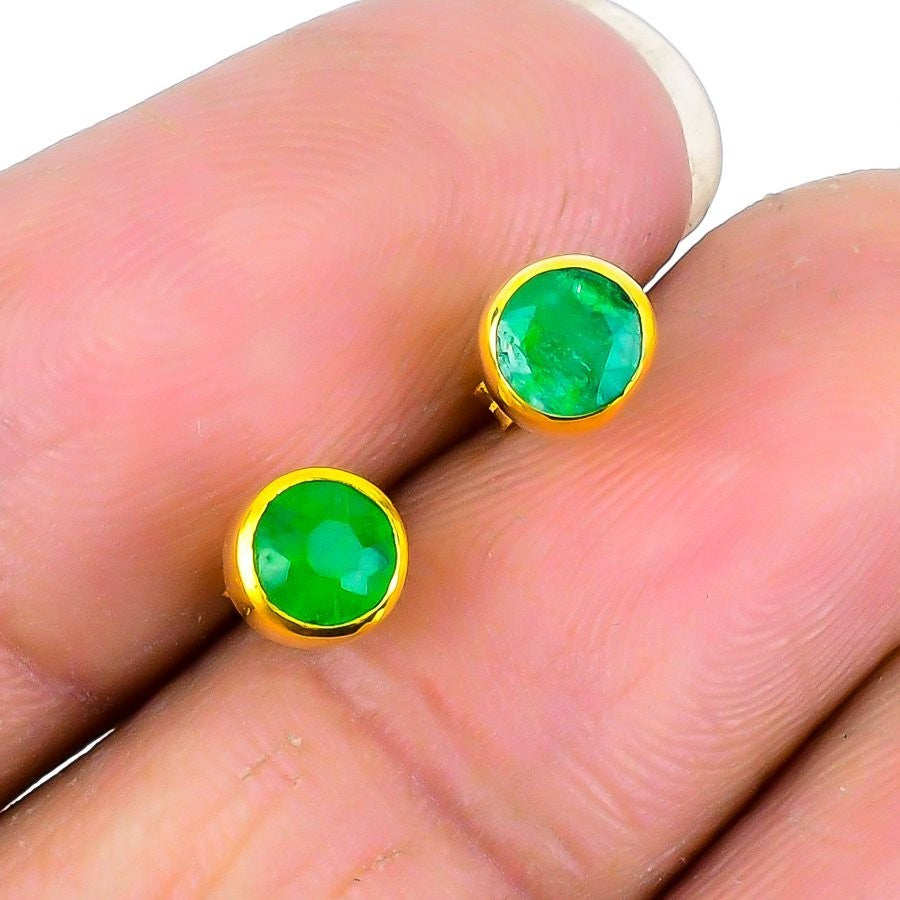 Emerald Faceted Stone Solid Silver Gold Vermeil Stud. Mother Earrings Jewelry