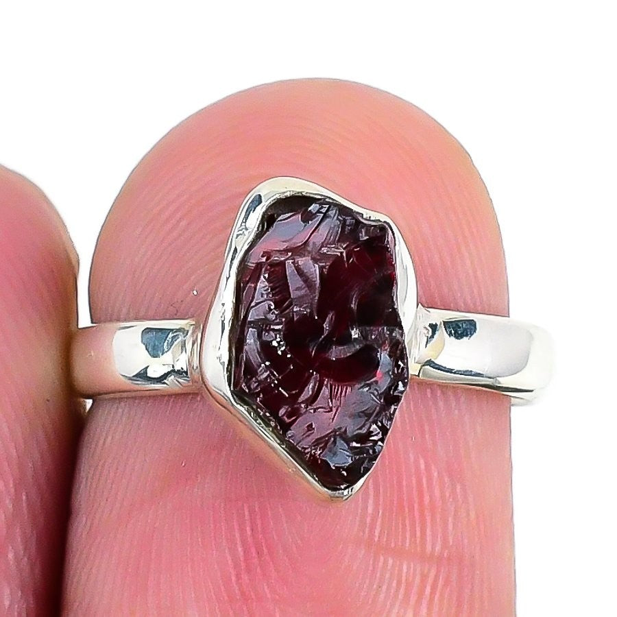 Garnet Rough Stone Sterling Silver Daughter Stackable Trendy Promise Ring Size 6