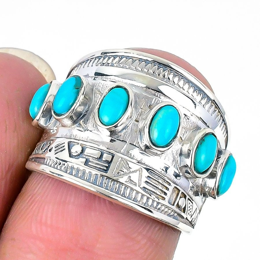 Turquoise Gemstone Solid Silver Statement Best Friend Gift Sister Ring Size 7