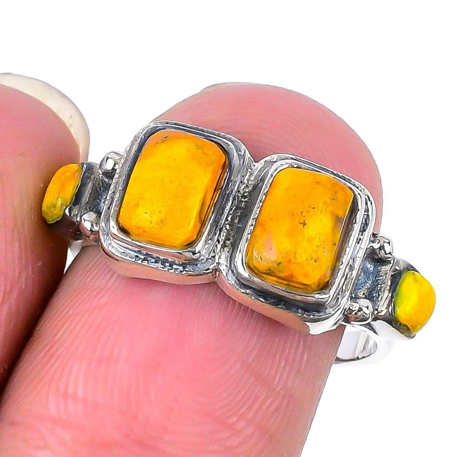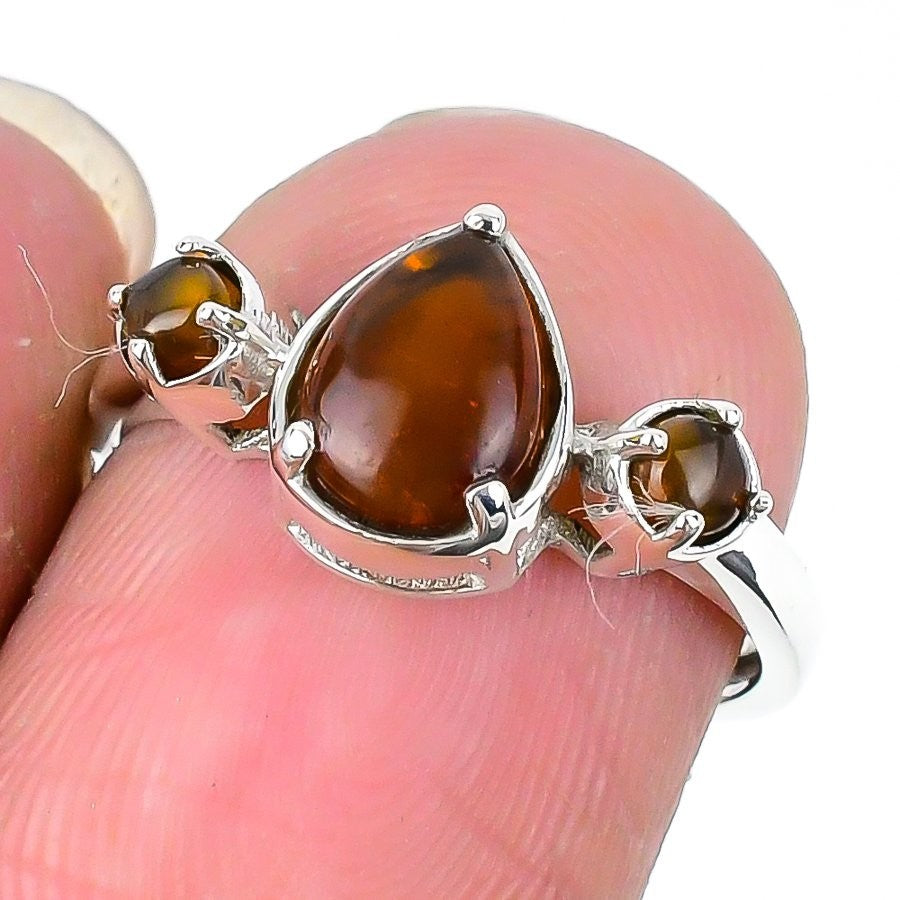 Baltic Amber Stone Solid Silver Wife Statement Sacral Chakra Ring Jewelry US 7