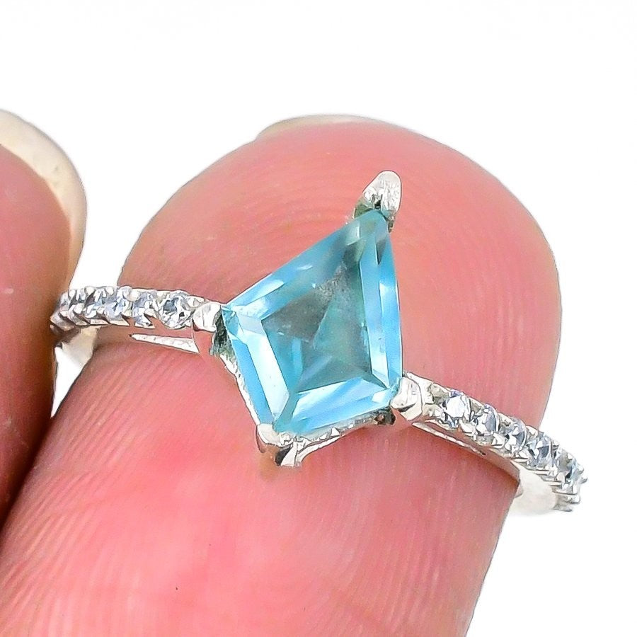 Natural Swiss Blue Topaz Solid Silver Statement Friend Gift Ring Jewelry US 6