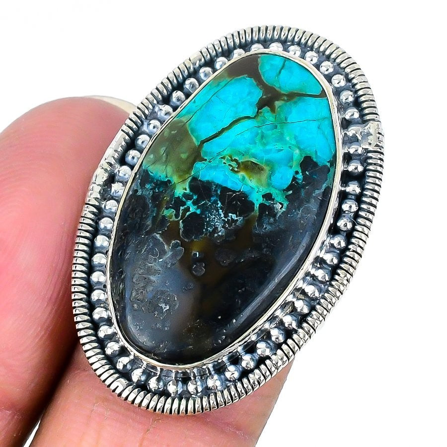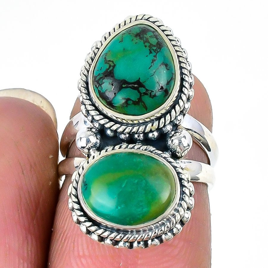 Chrysocolla Gemstone 925 Sterling Silver Statement Sisters Day Ring Jewelry US 6