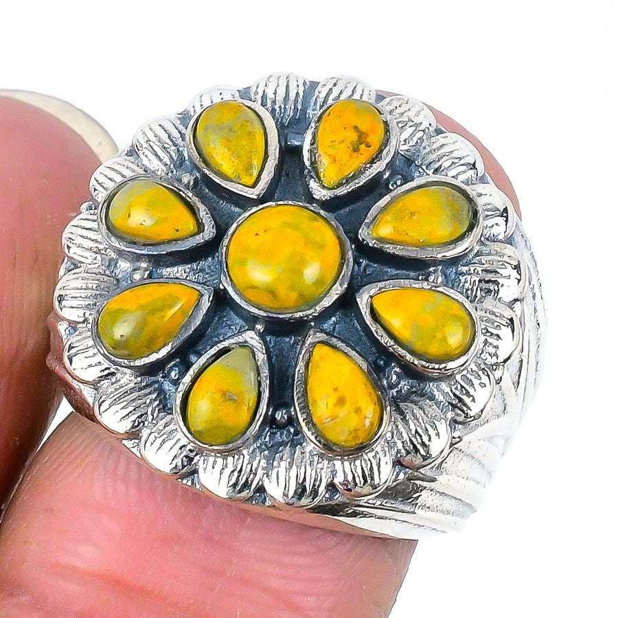 Bumble Bee Jasper Gemstone Solid Silver Statement Sister Wedding New Ring US 9
