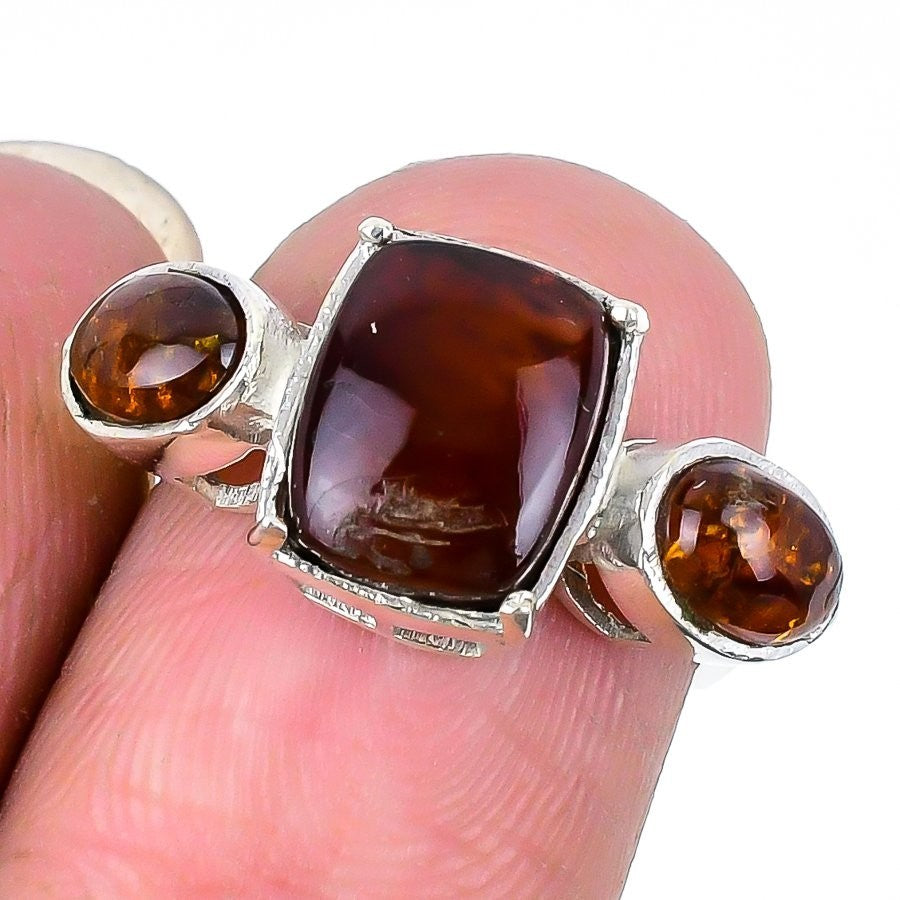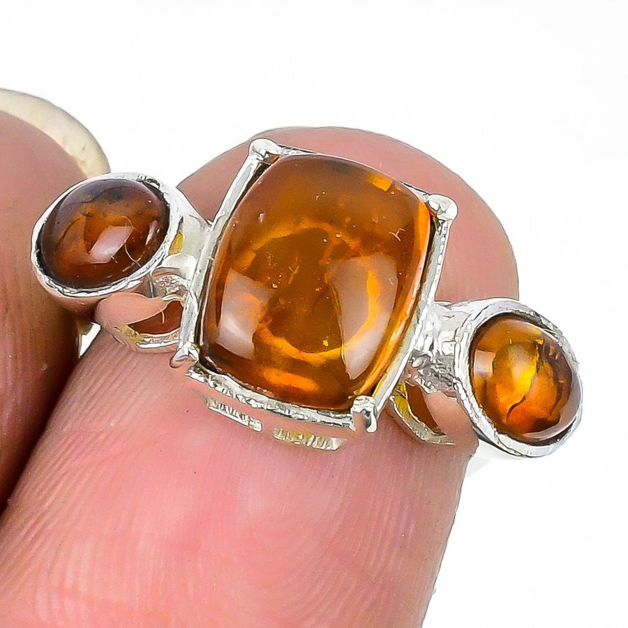 Baltic Amber Gemstone Ethnic Elegant New Statement Ring 925 Sterling Silver US 6