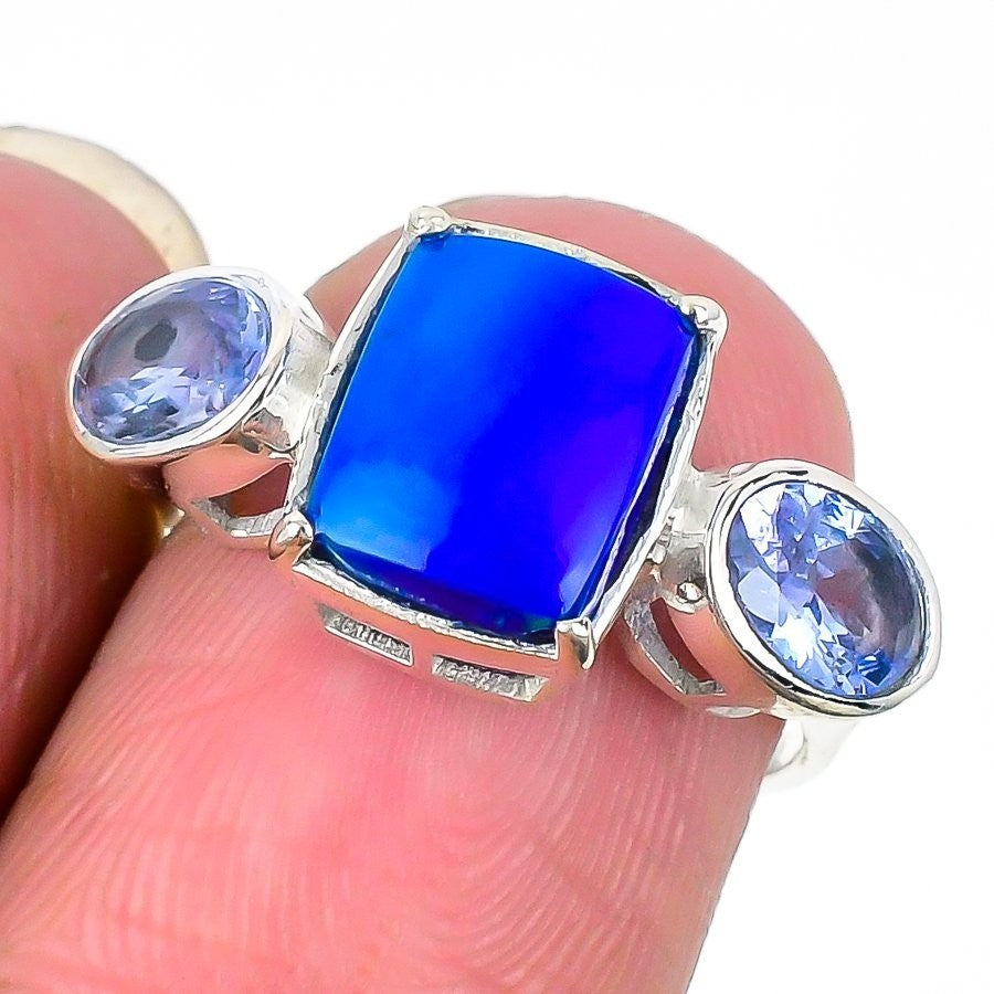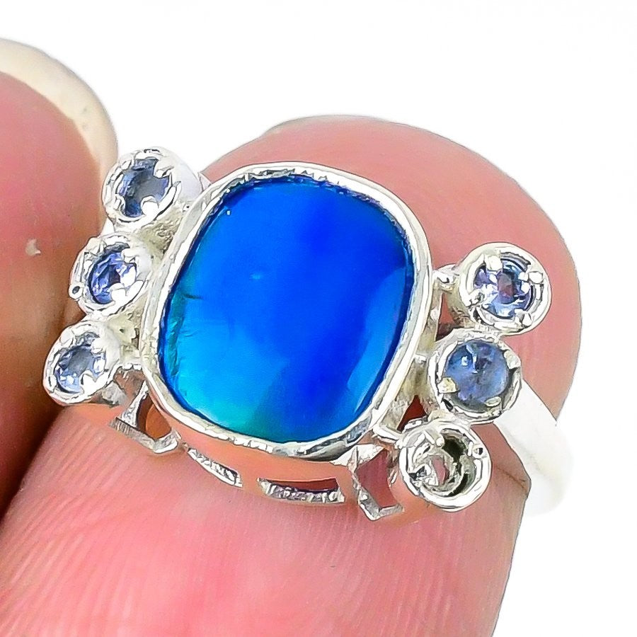 Natural Aurora Opal 925Ā SolidĀ Silver Artisan Anniversary Statement New Ring US 7