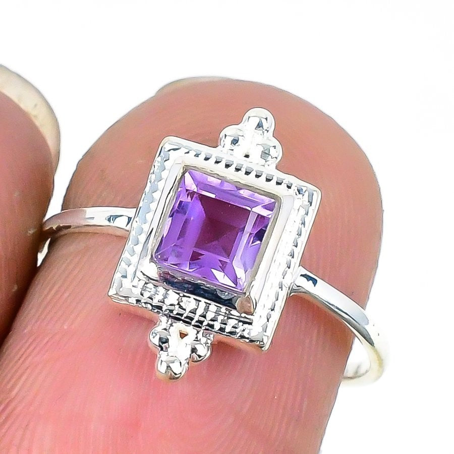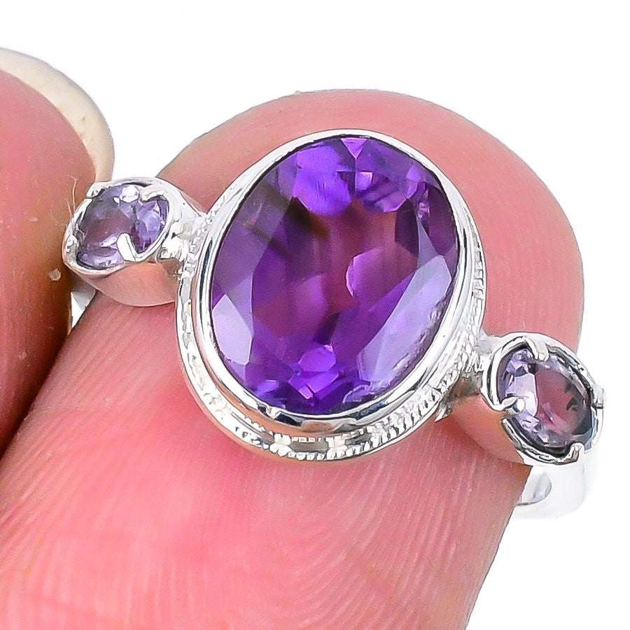 Amethyst Faceted Gemstone Solid Silver Statement Sister New Ring Jewelry US 6