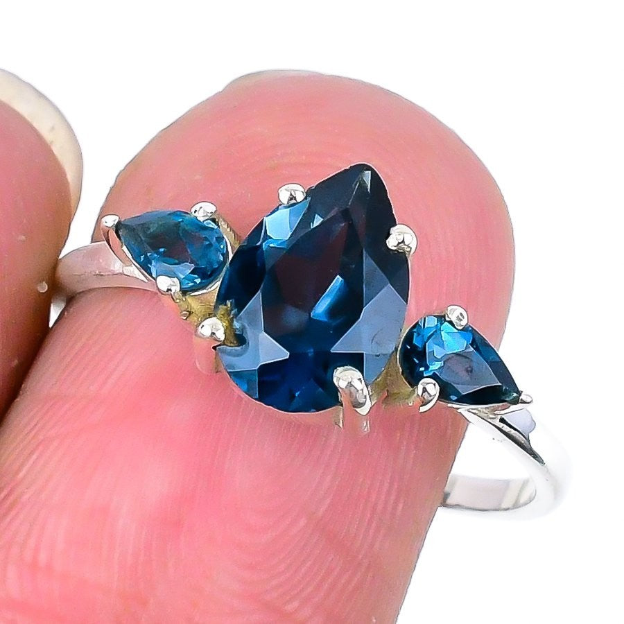 London Blue Topaz Gemstone Statement Sisters Gift Ring Size 10 925Ā SolidĀ Silver