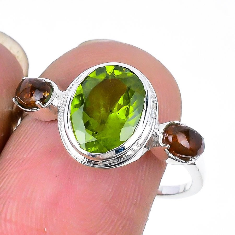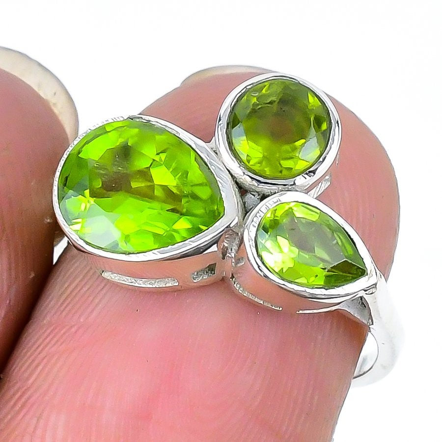 Peridot Faceted Stone 925 Silver Daughter August Statement Ring Jewelry Size 6.5