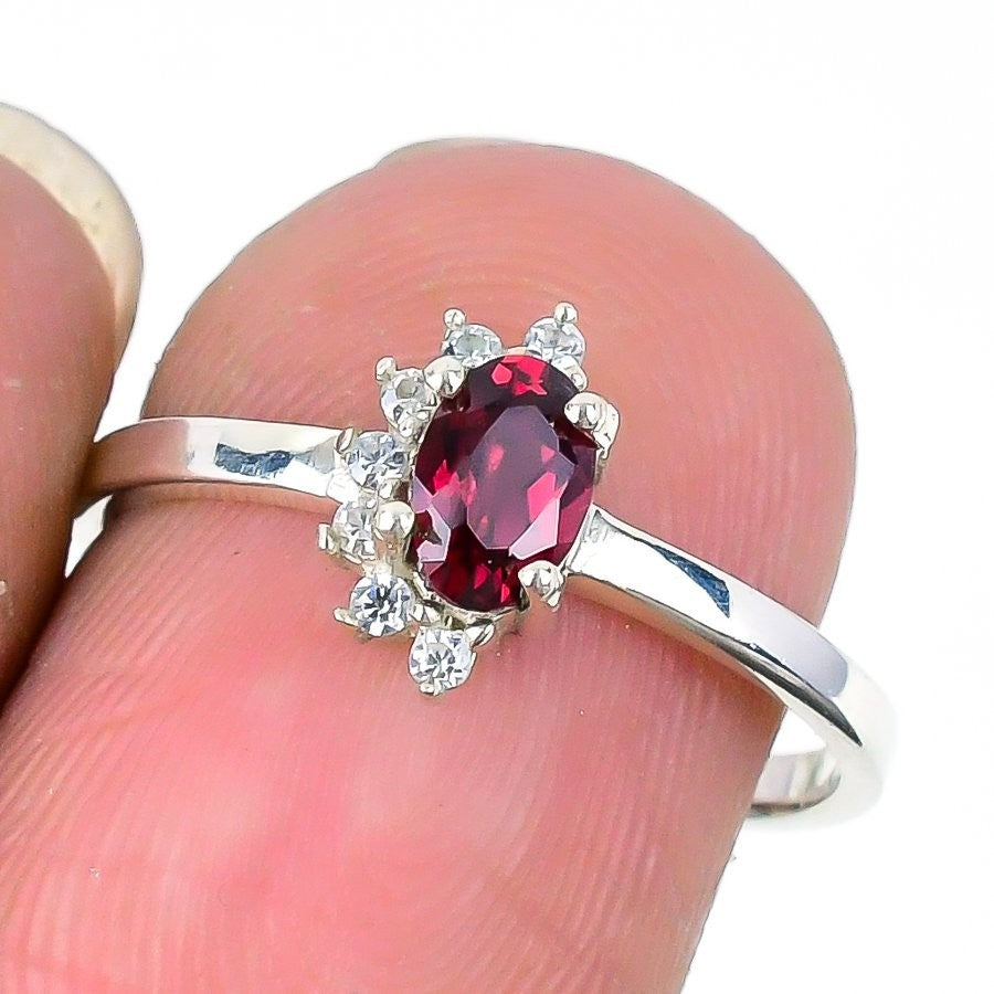 Garnet Faceted Gemstone 925Ā SolidĀ Silver Elegant Statement Ring Jewelry Size 8