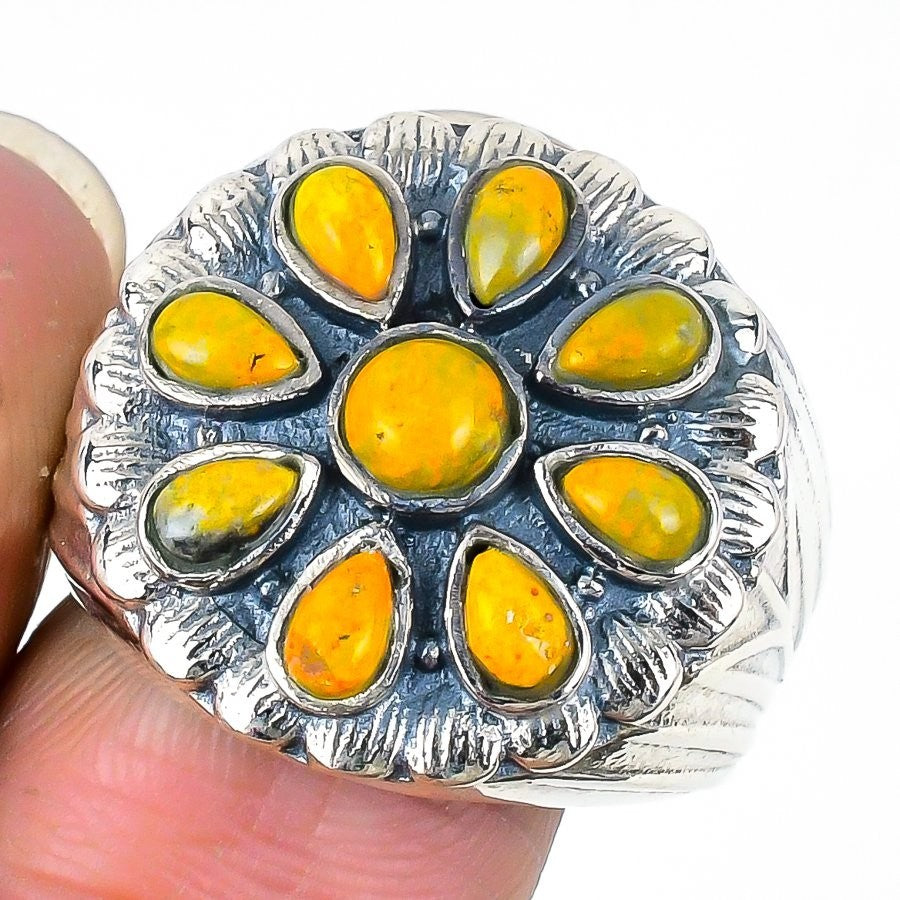 Natural Bumble Bee Jasper Ethnic Wife Statement Ring Solid Sterling Silver US 10