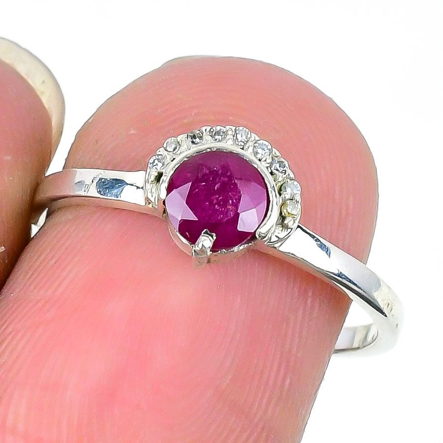 Friendship Day Deal July Birth Natural Ruby 925Ā SolidĀ Silver Statement Ring US 8