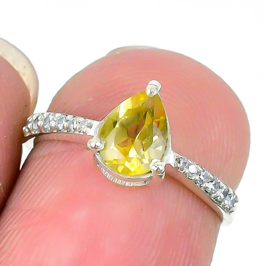 Natural Citrine Faceted Engagement Statement Ethnic Ring Jewelry Sterling Silver