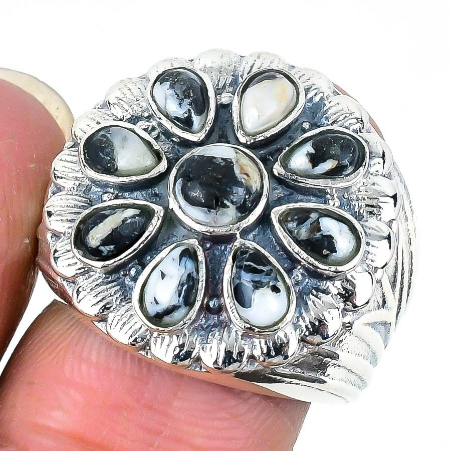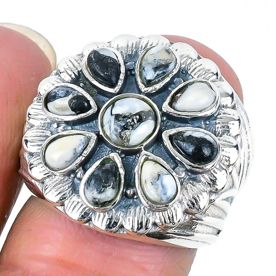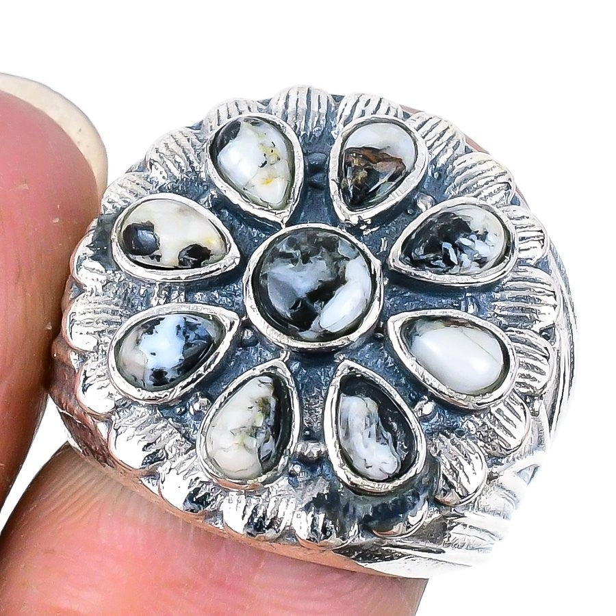 Natural White Buffalo Solid Silver Handcrafted Statement Friend Gift Ring US 5