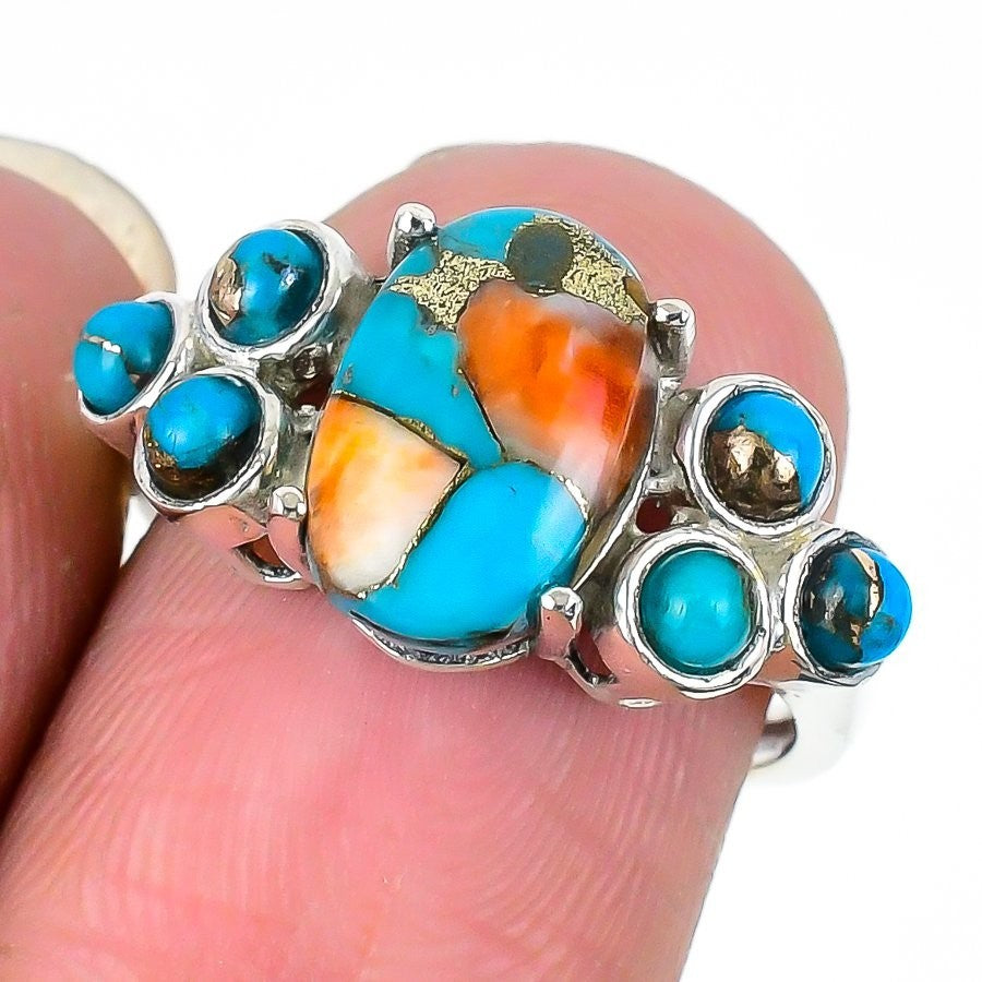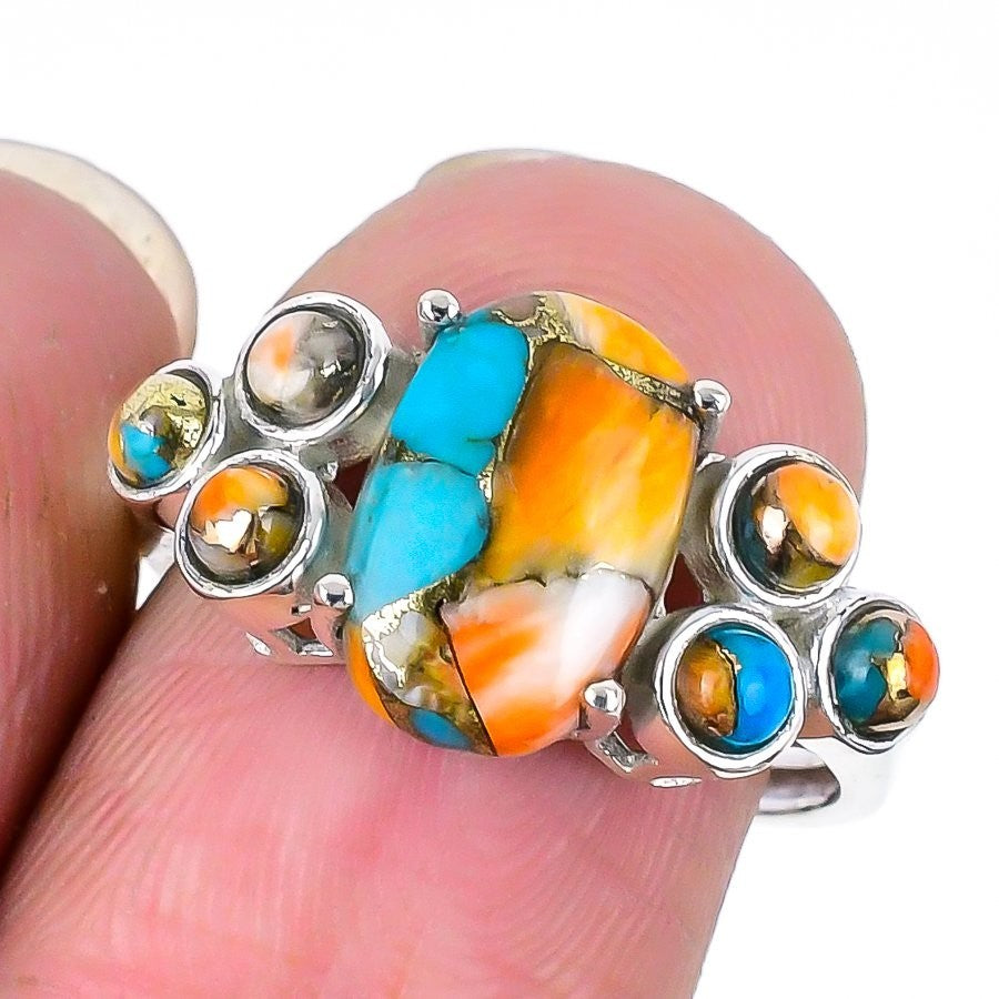 Spiny Oyster Stone 925Ā SolidĀ Silver Mother Statement Artisan Ring Jewelry US 7