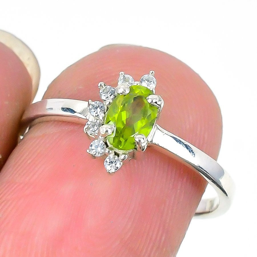 Natural Peridot Faceted Solid Silver August Birth Statement Birthday Ring US 8