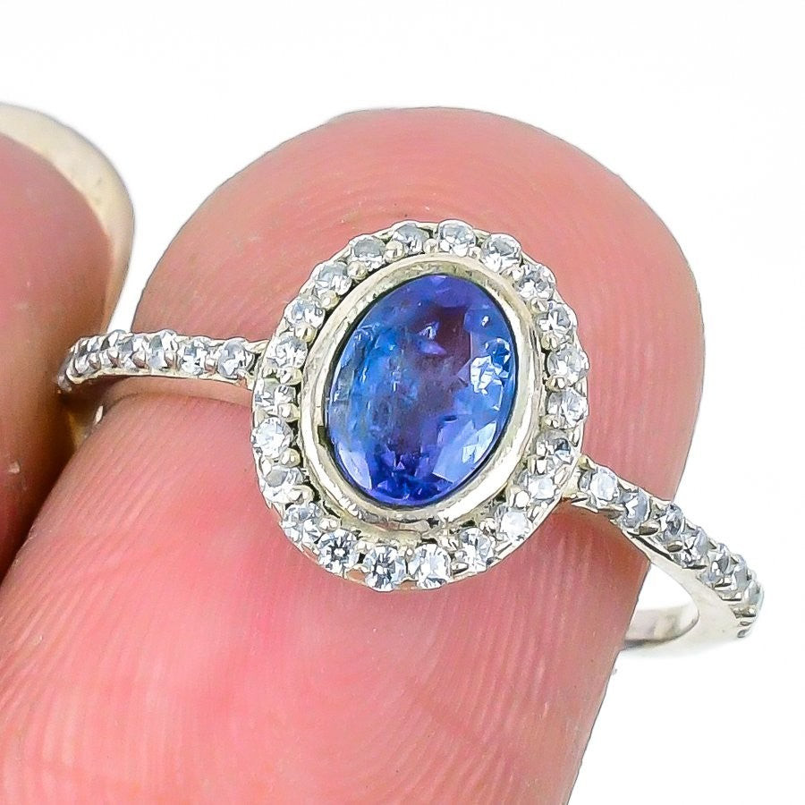 Tanzanite Faceted Gemstone 925 Silver Birthday Statement Wedding New Ring Size 8