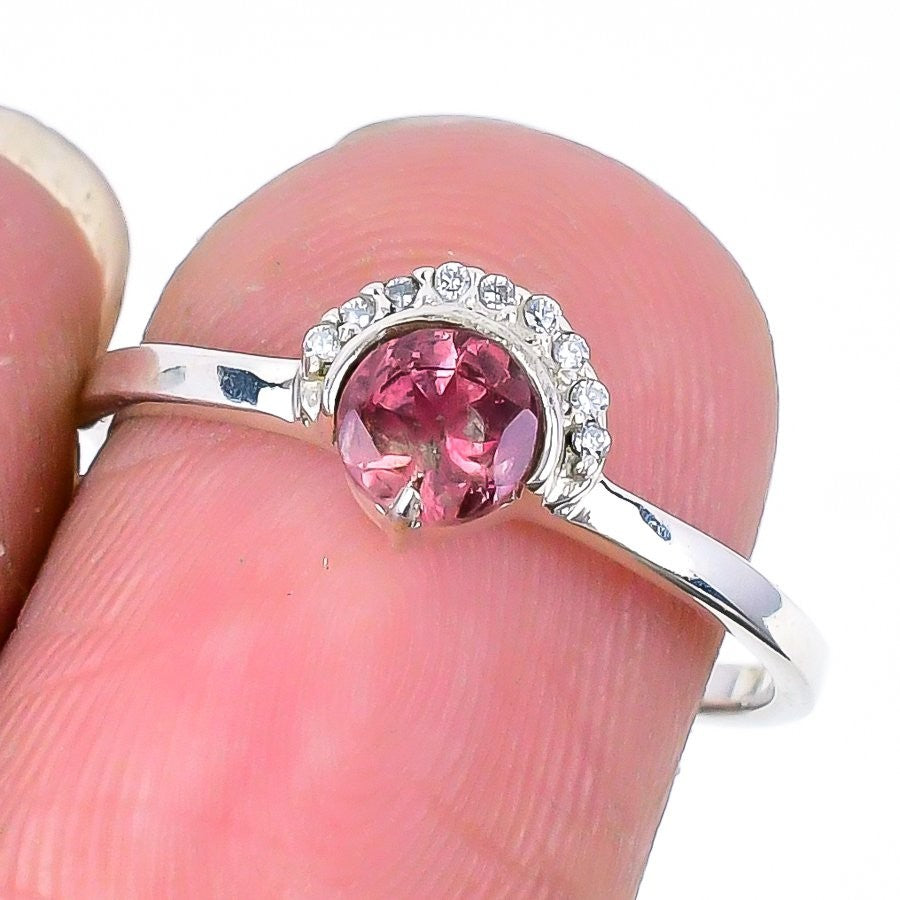 Pink Tourmaline Faceted Stone Statement Ring Jewelry Solid Sterling Silver US 8