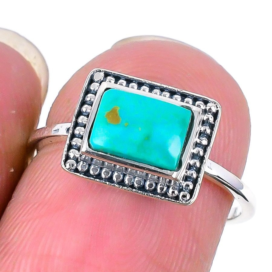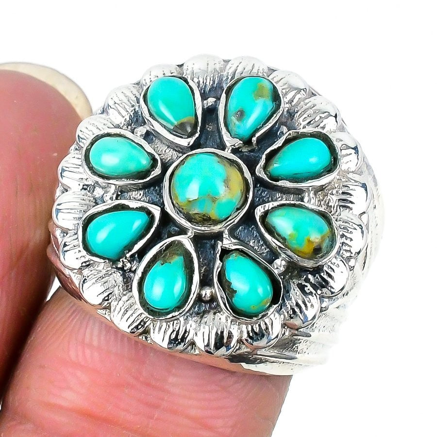 Natural Turquoise 925Ā SolidĀ Silver Statement Trendy Handmade Ring Jewelry US 7