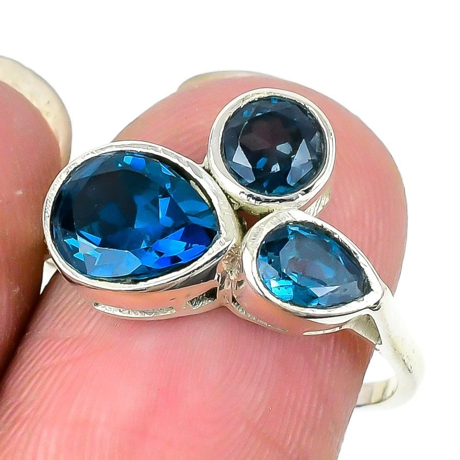 Natural London Blue Topaz Sterling Silver Birthday Statement Ring Jewelry US 7.5