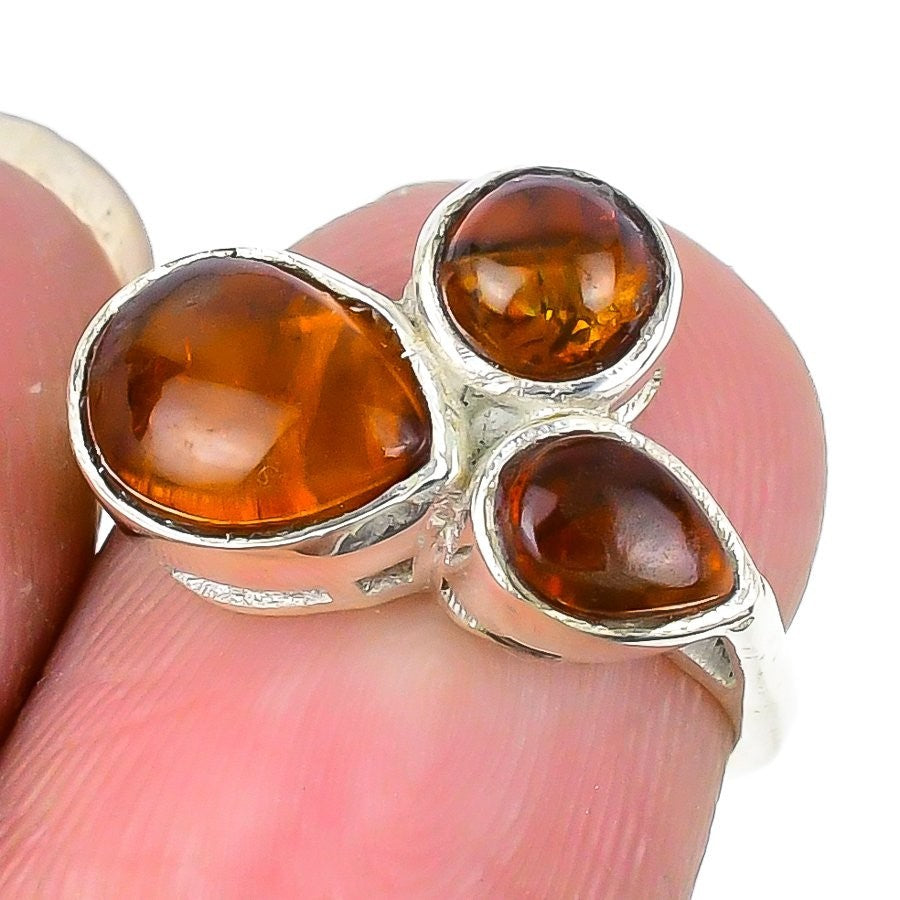 Sacral Chakra Baltic Amber Stone Statement Daughter New Ring 925 Sterling Silver