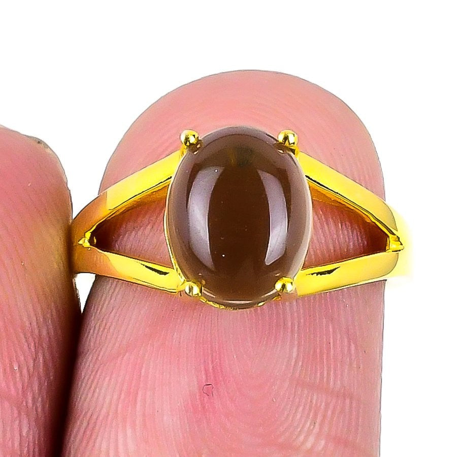Root Chakra Smoky Quartz Stone Solid Silver Sister Statement Ring Jewelry US 6