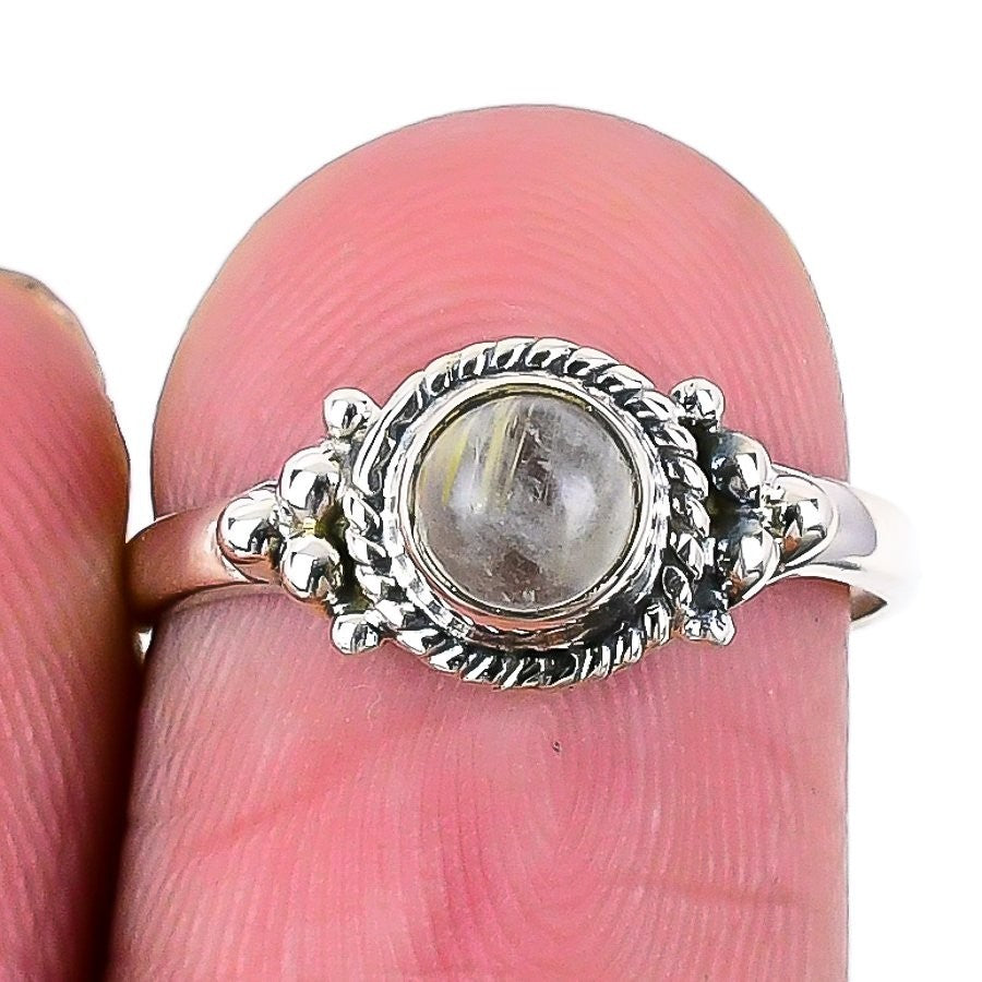 Golden Rutile Stone Solid Sterling Silver Sister Anniversary Statement Ring US 7