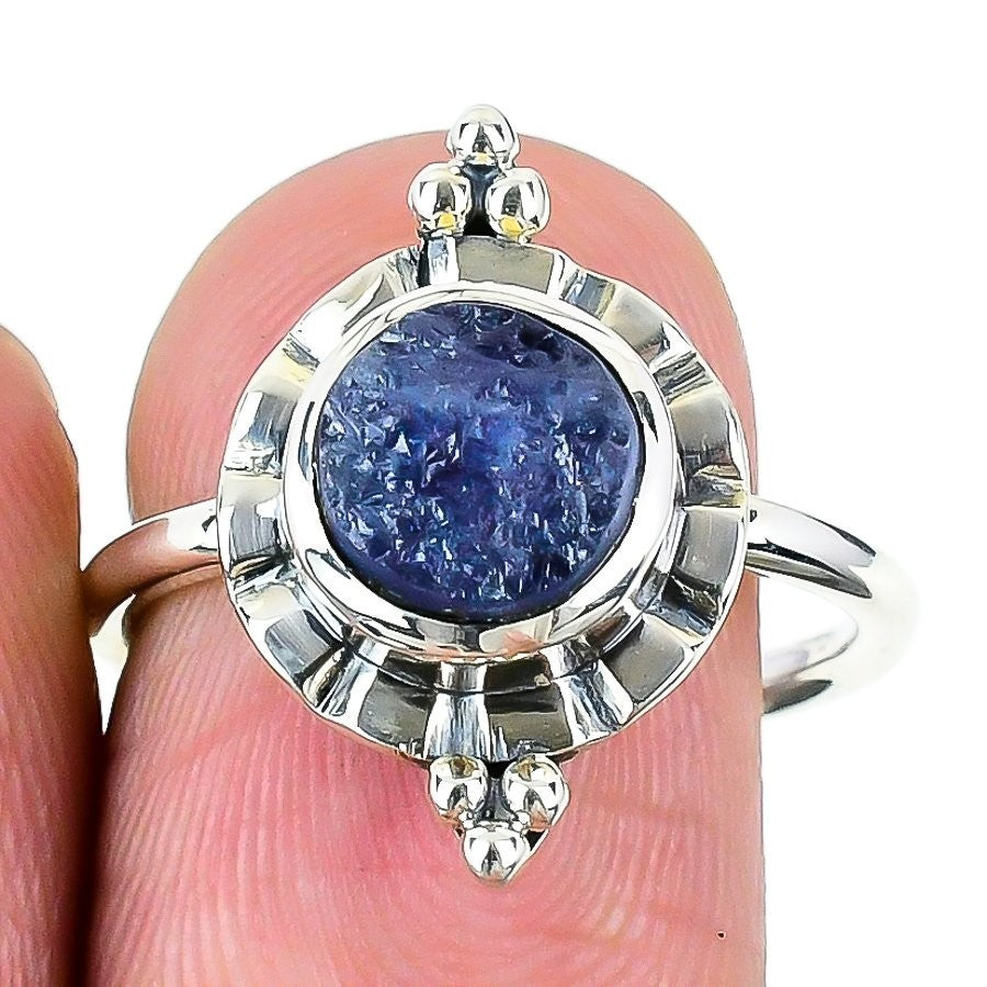 Tanzanite drusy Stone Solid Silver Unique Statement Sister Ring Jewelry Size 8.5