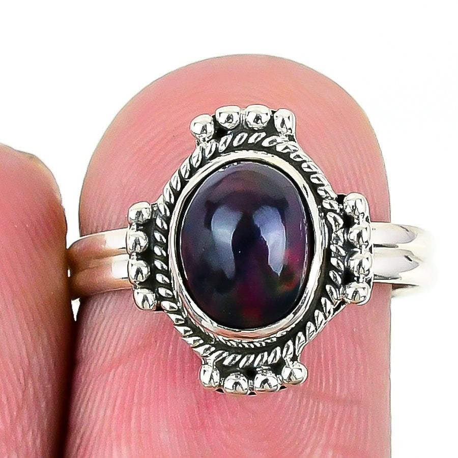 Black Ethiopian Opal Gemstone New Statement Ring Jewelry Sterling Silver US 7.5