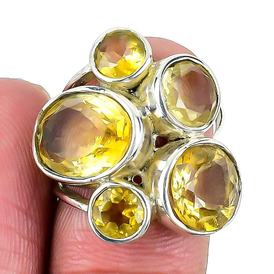 Natural Citrine Solid Sterling Silver Statement Sister Engagement Boho Ring US 6