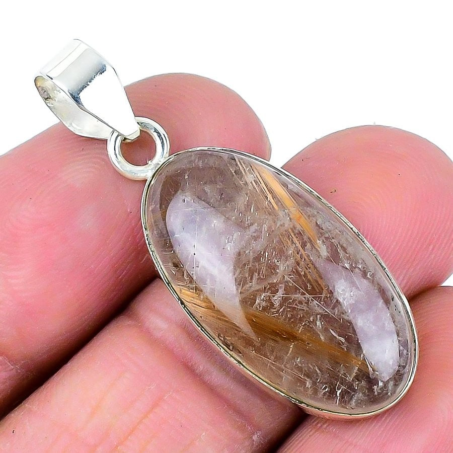 Golden Rutile Stone 925 Sterling Silver Engagement Mother Trendy Pendant Jewelry