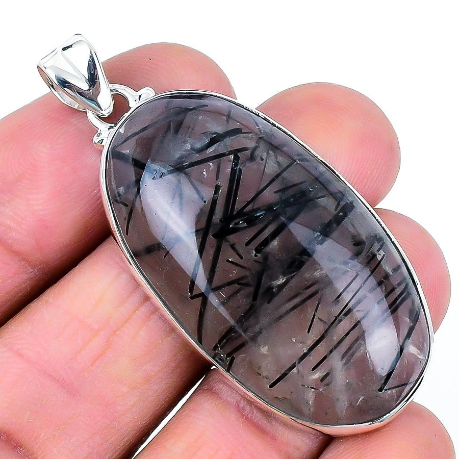 Black Rutile Stone Solid Silver Unique Friendship Day Engagement Elegant Pendant