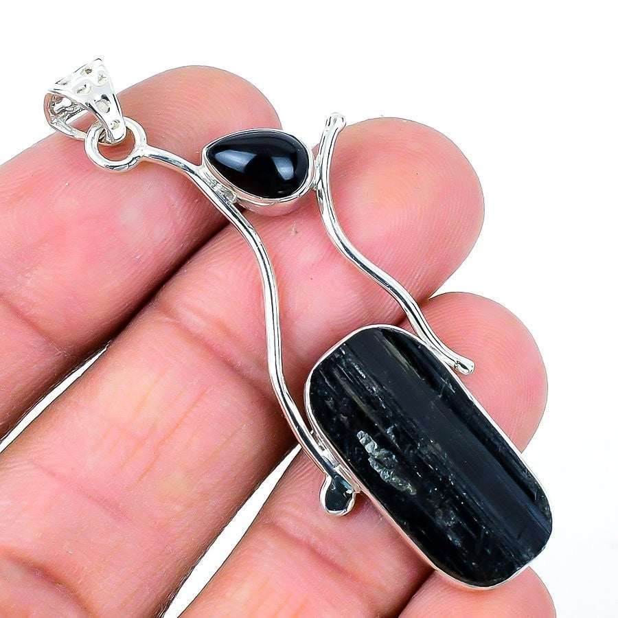 Natural Black Tourmaline Sterling Silver Birthday Best Friend Gift Wife Pendant