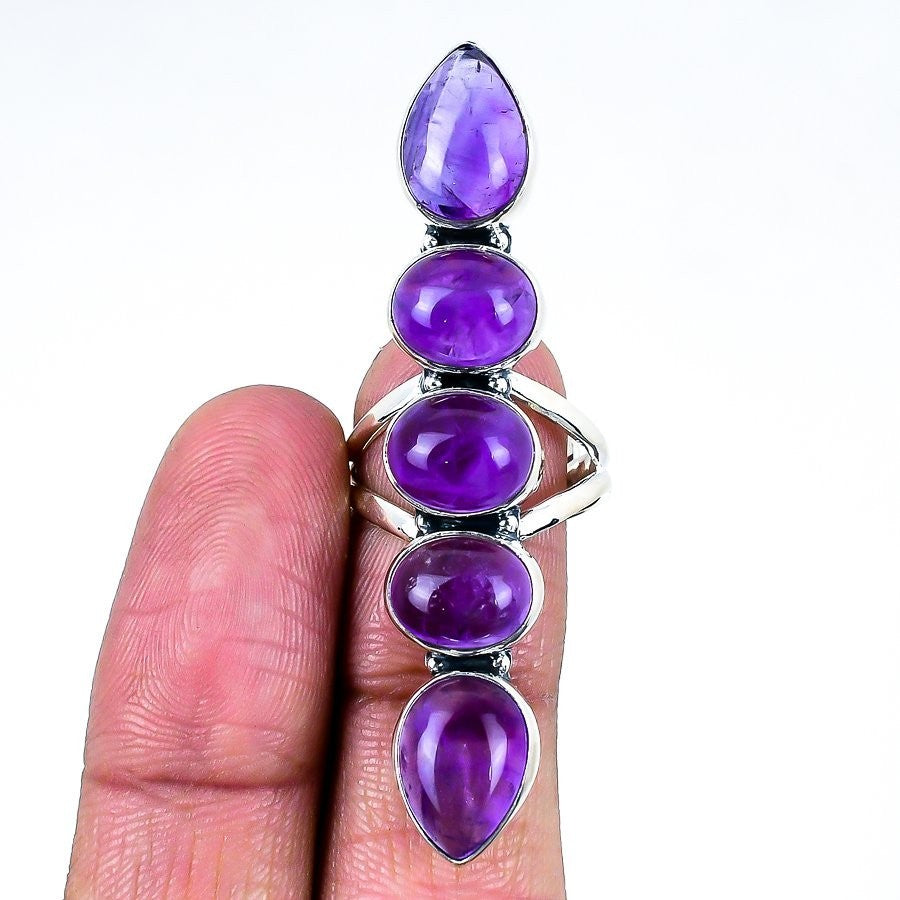 Sage Amethyst Gemstone 925 Sterling Silver Anniversary Wedding Band Ring Jewelry
