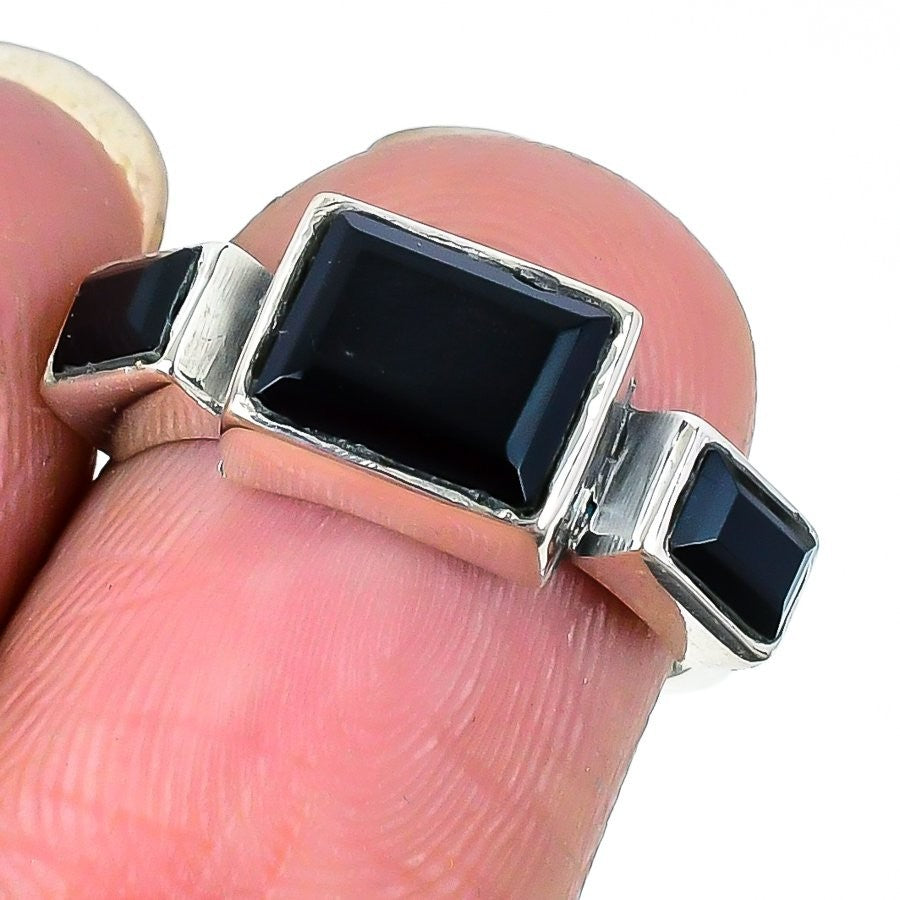 Black Spinel Stone Statement Sisters Gift Ring Jewelry 925Ā SolidĀ Silver US 6.5