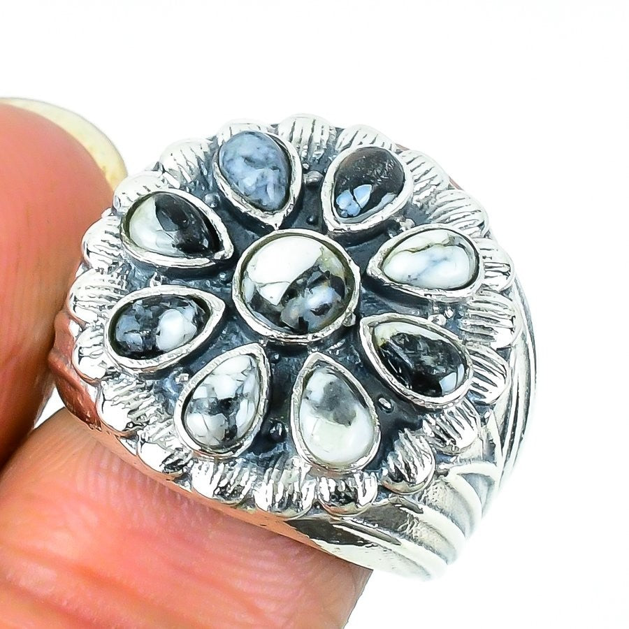 Natural White Buffalo Wife Statement Ring Jewelry Size 9 Solid Sterling Silver